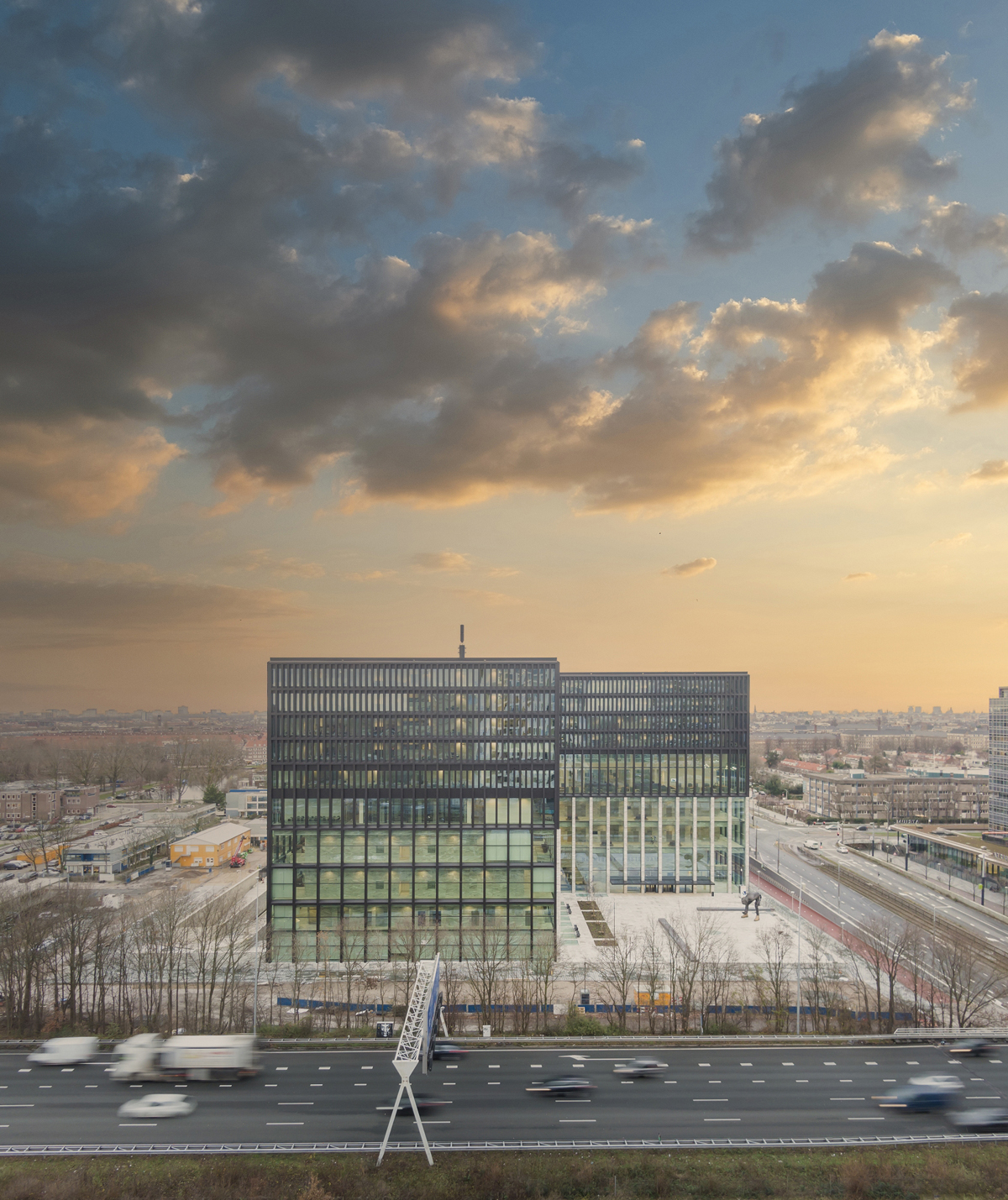 The distinguished and welcoming new building of the Amsterdam courthouse has begun operation, replacing the old complex on Parnassusweg in Amsterdam. The first sessions take place here on Monday the 3rd of May. This scintillating and functional building in the Zuidas area was designed and built by the consortium NACH (New Amsterdam Court House) at the behest of the Central Government Real Estate Agency. The Amsterdam courthouse, with 50 different courtrooms, more than 1000 staff including 200 judges, and 140,000 verdicts per year, is by far the largest of the 11 courthouses in the Netherlands.