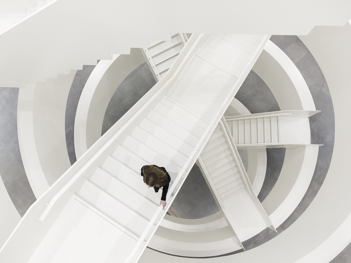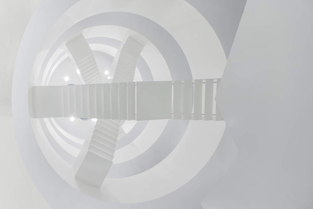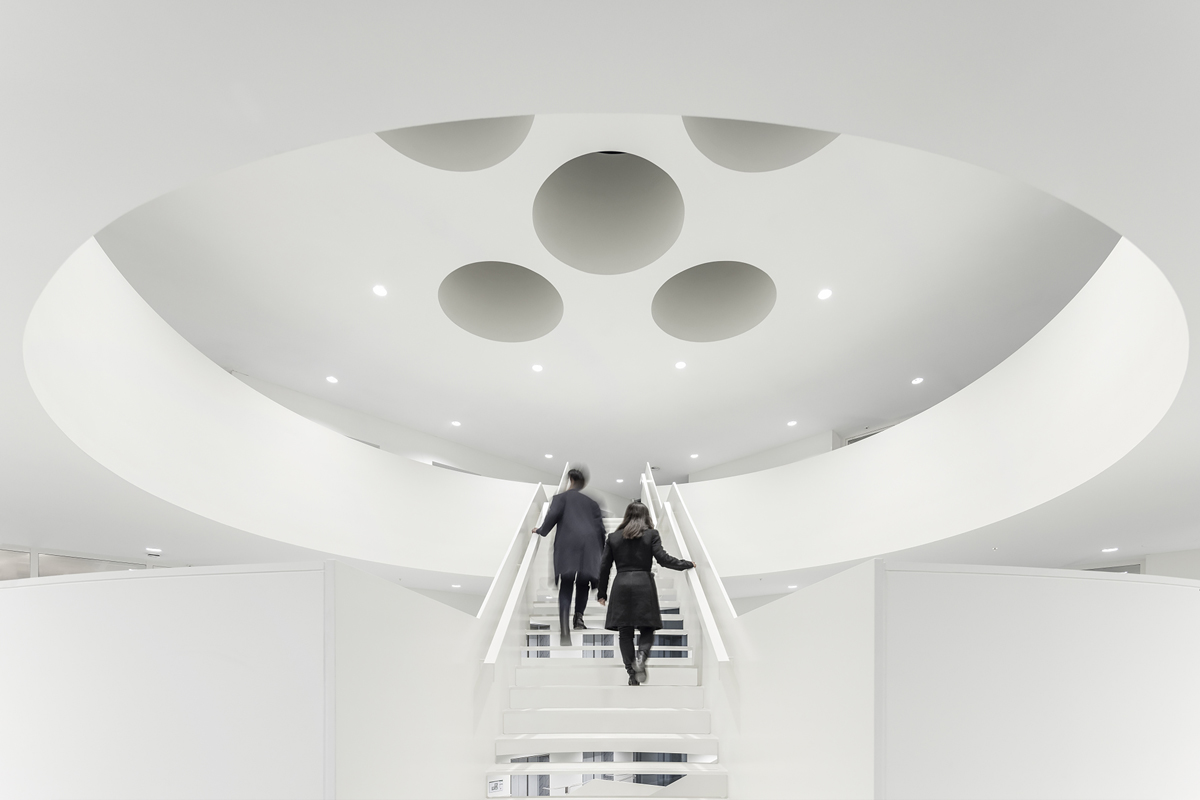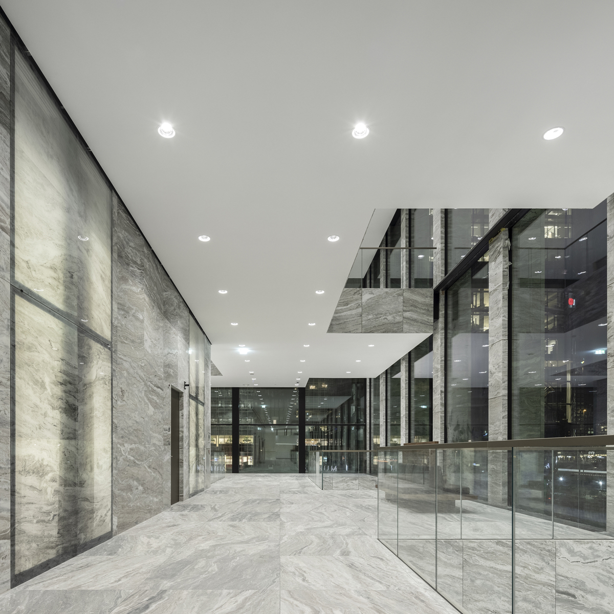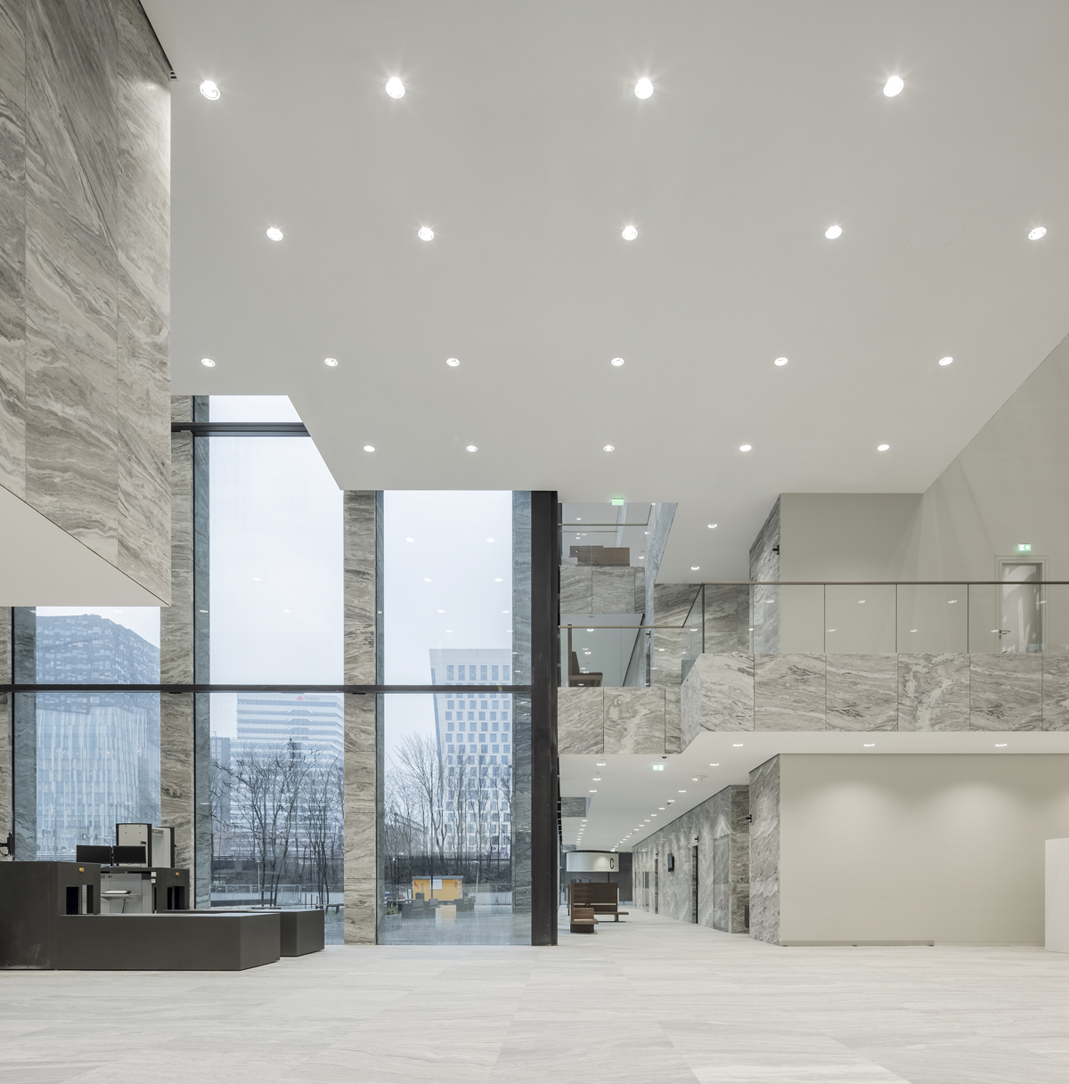 The architectural design by KAAN Architecten, one of the initiators of the consortium, was founded on the principle that in a state governed by the rule of law, jurisprudence is a public affair woven into the fabric of everyday life. The 50-metre-high building is open and unpretentious in nature. Large windows in the lower half of the building allow views from the street into the interior. The spaciously designed foyers around the courtrooms provide room for visitors (800 to 1000 per day), robed lawyers with their clients, reporters, defendants, and others. There is always a view of the city from the building itself. The central hall with escalators alongside an enclosed garden and floors of courtrooms opens into a sea of space and light.