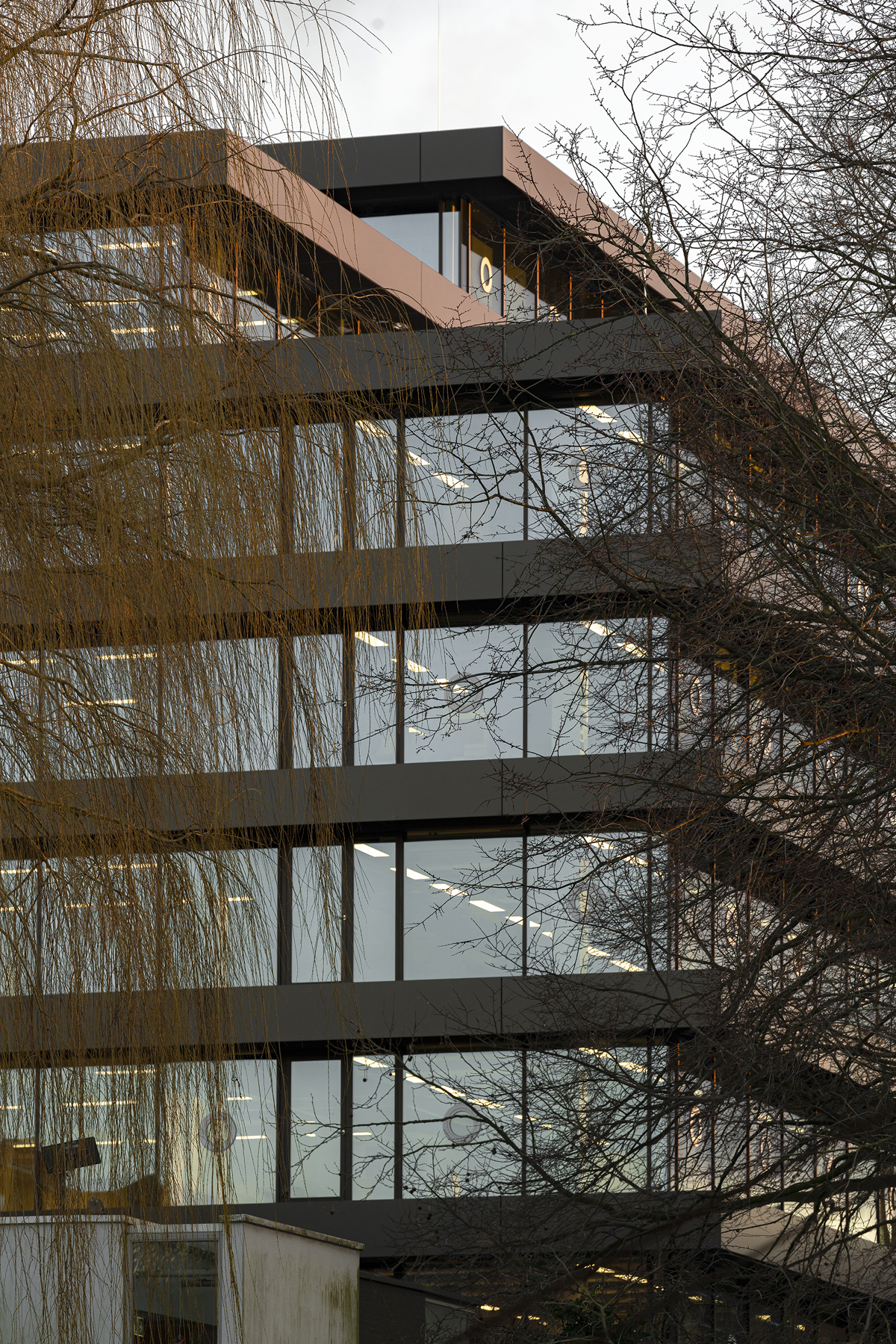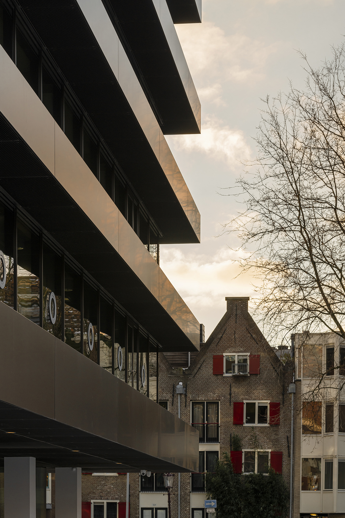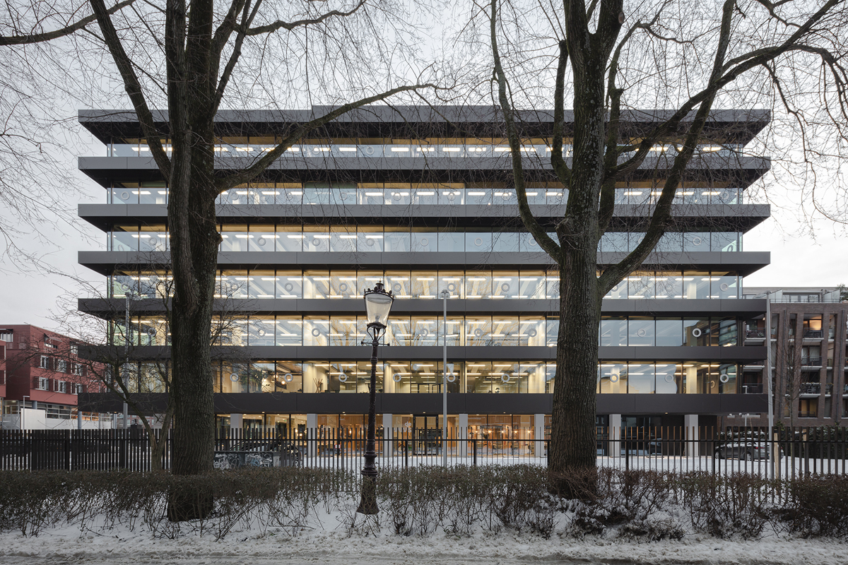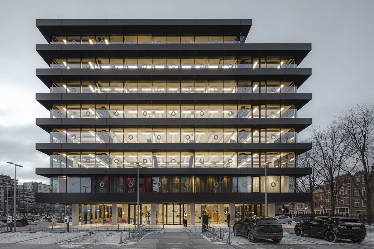 Inspired by the work of artist Donald Judd and drawing on their earlier work, KAAN Architecten has optically separated the floors of De Walvis. However, this strong horizontal emphasis is flexible on the interior since some openings have been left in the floors to potentially link them in the future. The floors now extend about a metre beyond the original building and consist of solid-looking dark bands that are actually light, hollow metal constructions.