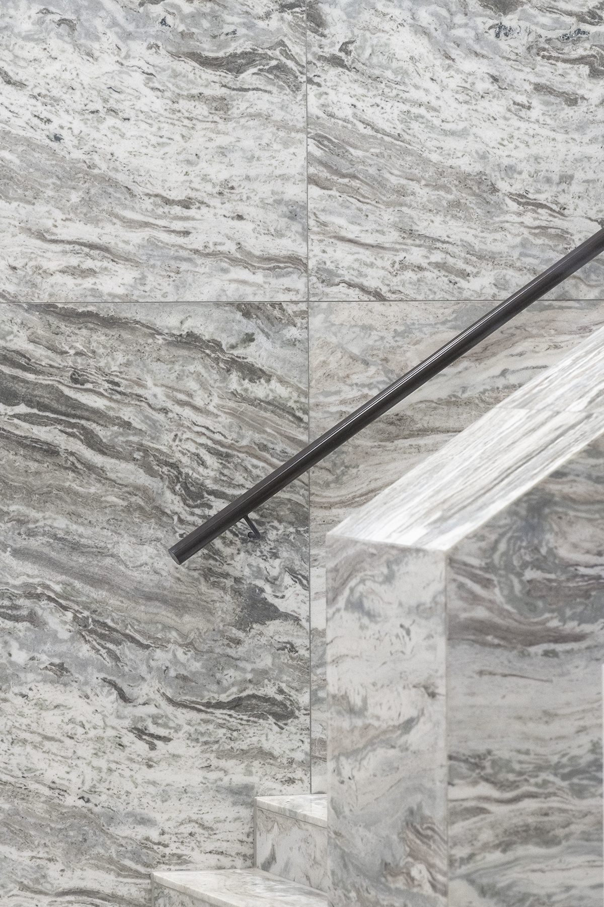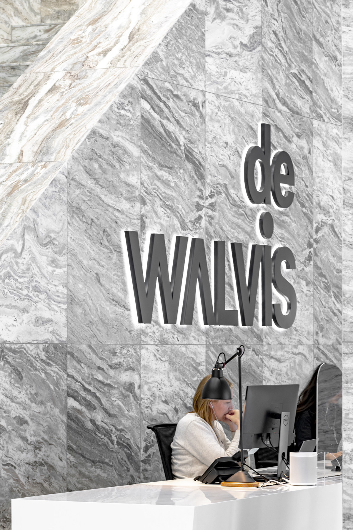 Additional design decisions that radically impact the sense of spatiality include setting back the ground floor lobby, richly clad in marble and appearing to detach the building from its footing, and removing entirely the heavy entablature that previously pressed down on De Walvis, giving the building plumpness.
